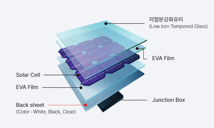건물 외벽의 마감재로 주로 사용되는 BIPV 모듈로 모듈 뒷면을 Back sheet로 적용하여 모듈의 효율을 향상시킨 type