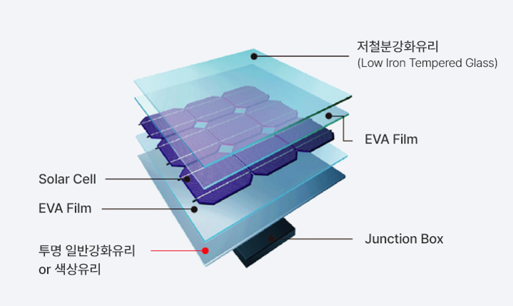 건물의 천장이나 Curtain Wall 구조에 주로 사용되는 BIPV 모듈로 모듈 뒷면을 Glass로 적용하여 빛이 투과되어 건물 내부에서 수광이 가능한 type